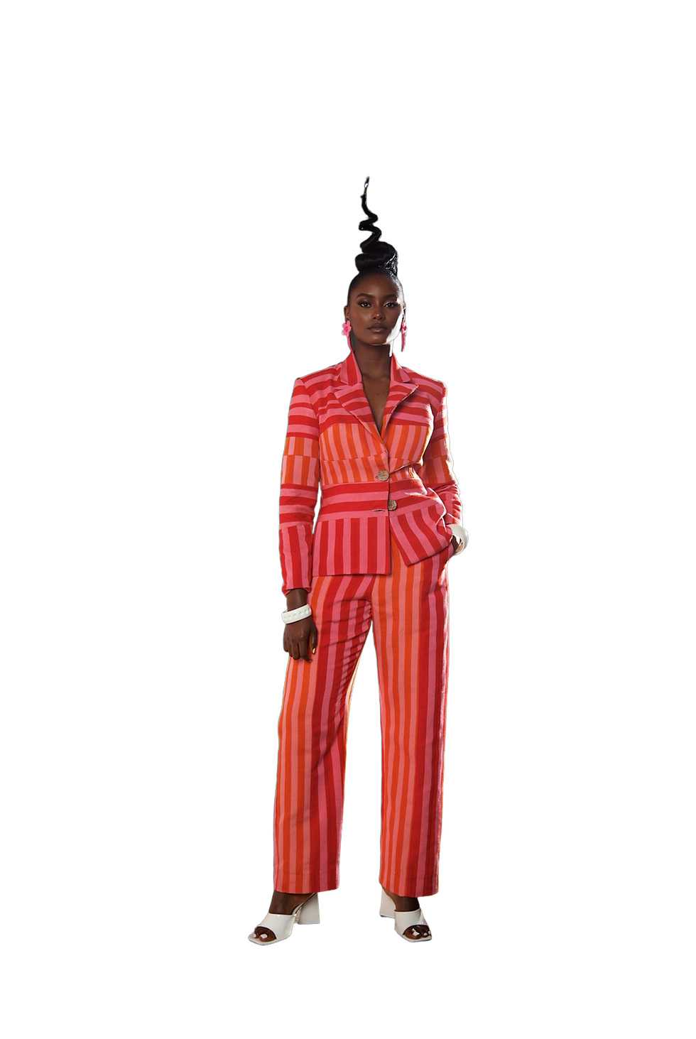 Elevate any outfit with the FÌFÉYÍMI JACKET, a statement piece that blends bold color blocking with precise tailoring. Designed with voluminous shoulders and a sharply nipped-in waist, this top brings drama and elegance to your wardrobe.
